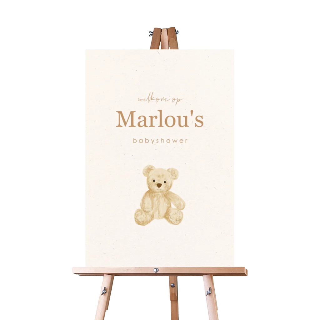 Organiseer jij binnenkort een babyshower? Verwelkom de mommy to be en de gasten met dit schattige welkomstbord met teddybeer. Pas het ontwerp naar wens aan in onze online editor.
