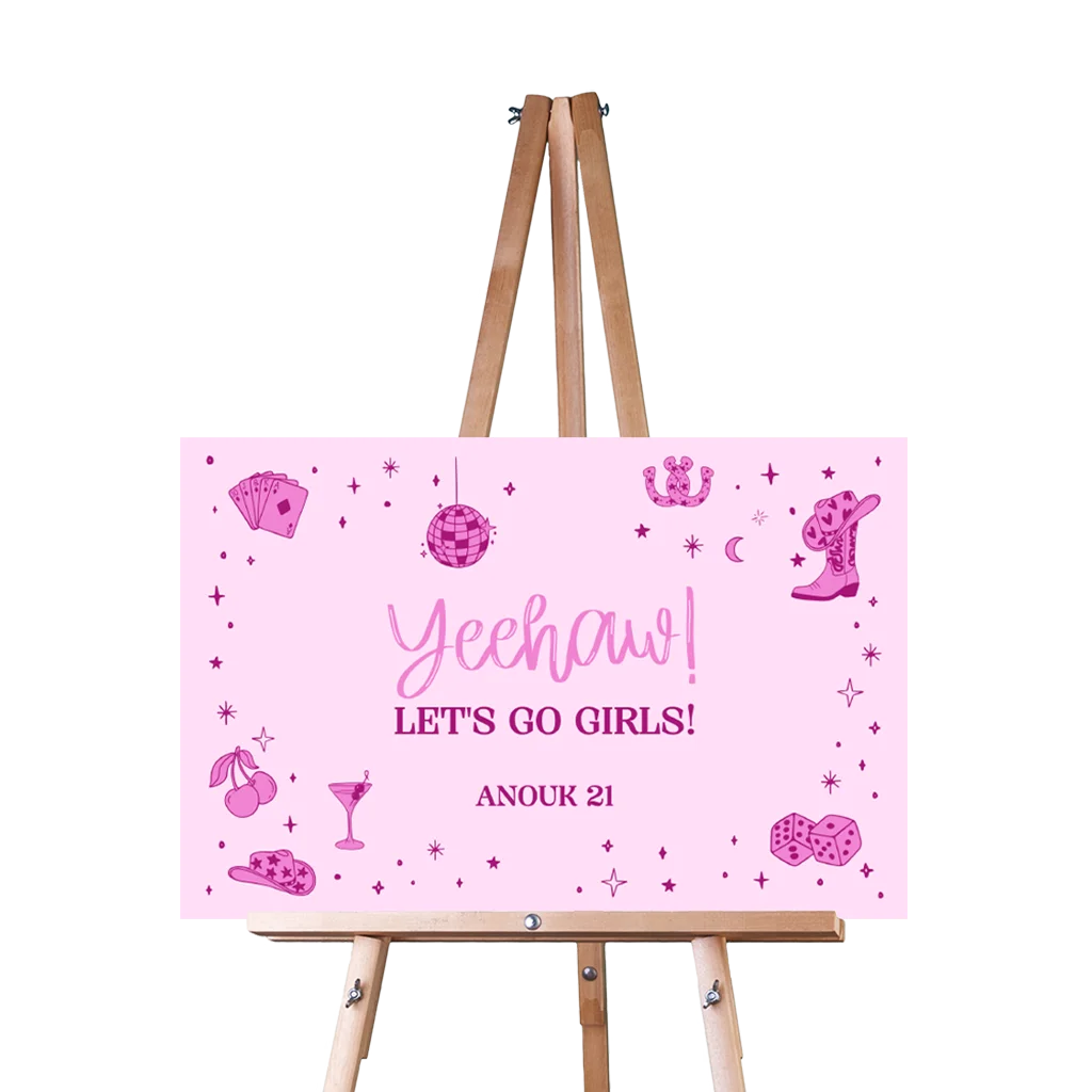 Dit unieke welkomstbord is perfect voor op een 21-dinerfeest met een cowboythema. Helemaal on trend, yeehaw!