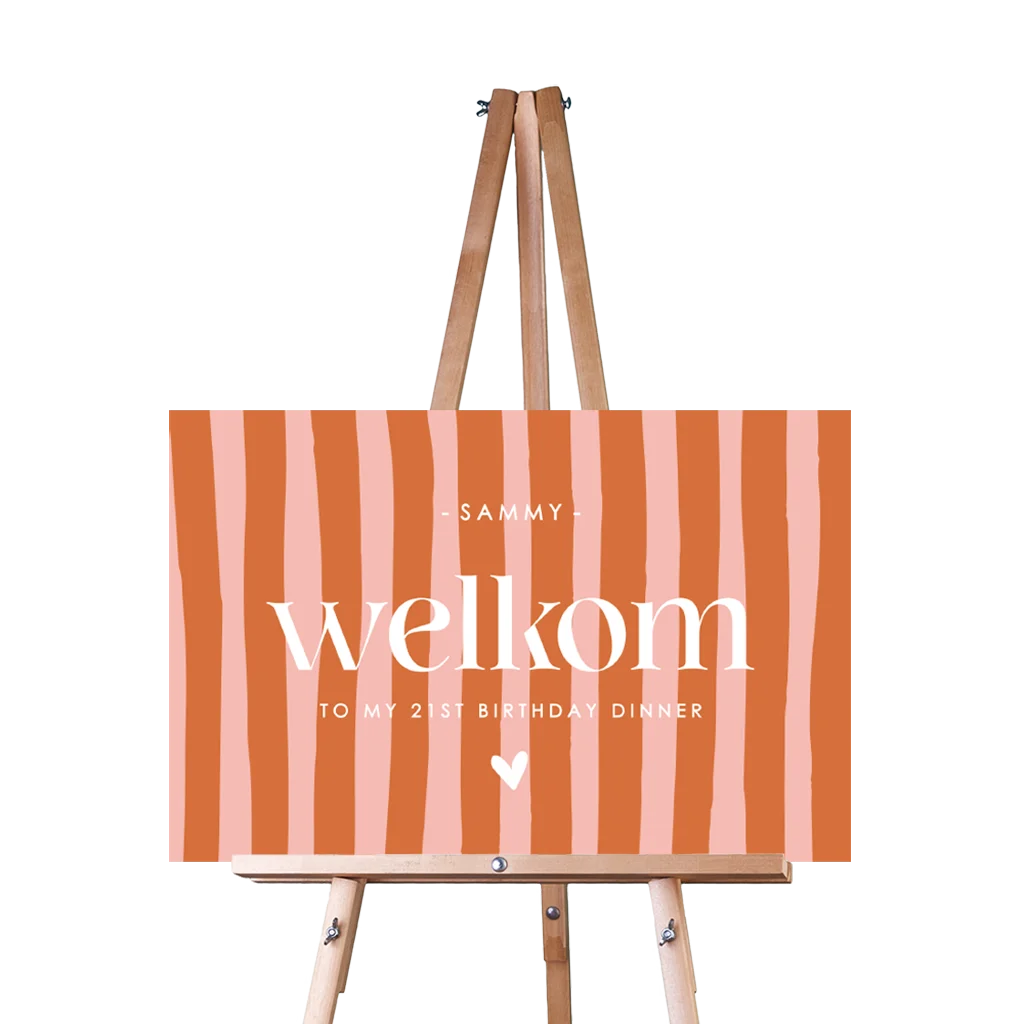 Verwelkom de gasten op jouw 21 diner met dit kleurrijke welkomstbord!