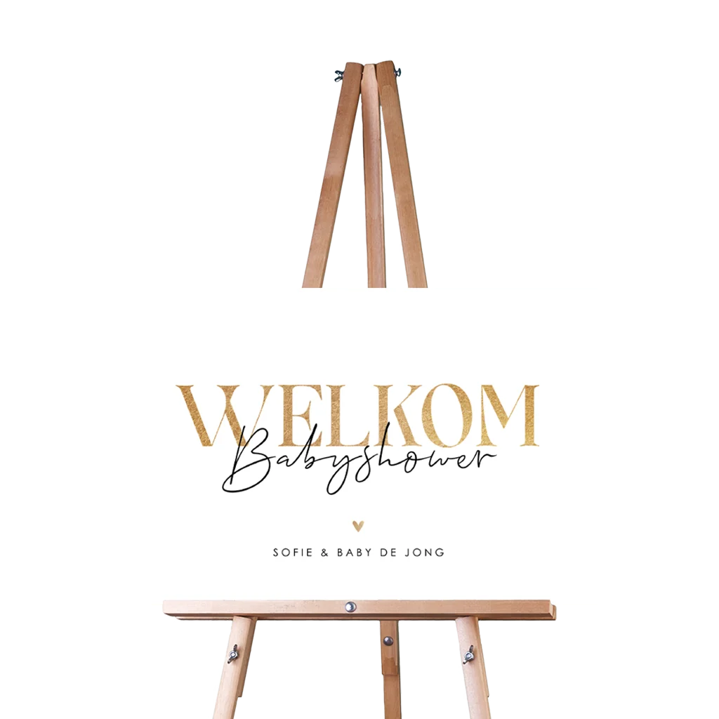 Welkomstbord babyshower met gouden letters