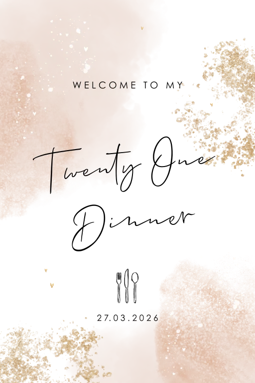 Maak jouw twenty one dinner helemaal af met dit welkomstbord. Bewerk het bord gemakkelijk in onze editor.
