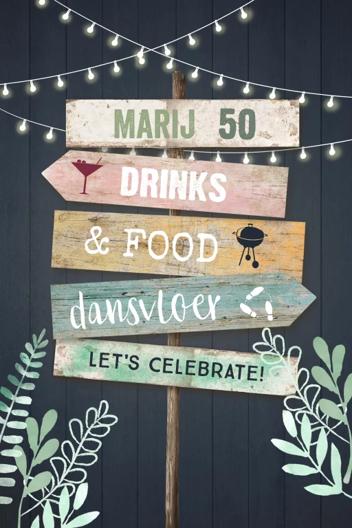Welkomstbord verjaardag 50 jaar met wegwijzer