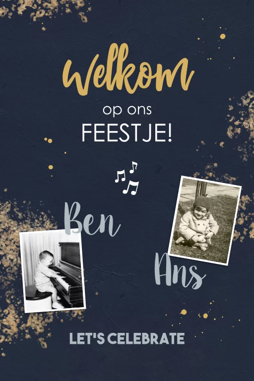 Donkerblauw welkomstbord voor verjaardag met foto's
