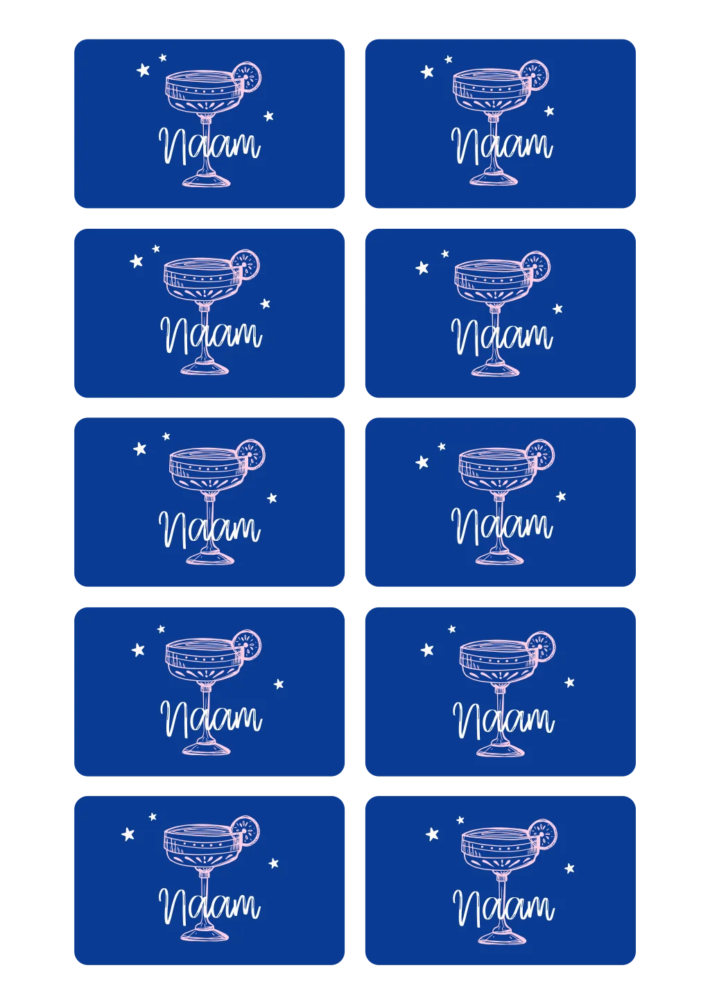 Maak jouw 21 diner compleet en bestel deze toffe blauw/roze naamkaartjes met cocktail glas! Ga aan de slag met onze editor en pas gemakkelijk het design zelf aan. Wist je dat je met een lettertype bijvoorbeeld een hele andere look kan creëren?