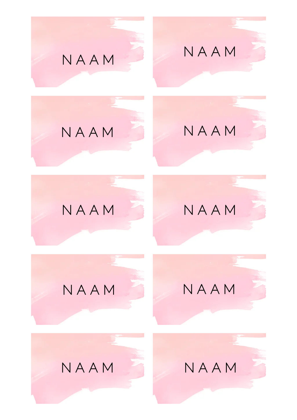 Stijlvol naamkaartje passend bij je 21 diner uitnodiging, mooi met roze watercolor. Pas de kleuren en lettertypes naar wens aan in de editor en bestel deze naamkaartjes gemakkelijk.