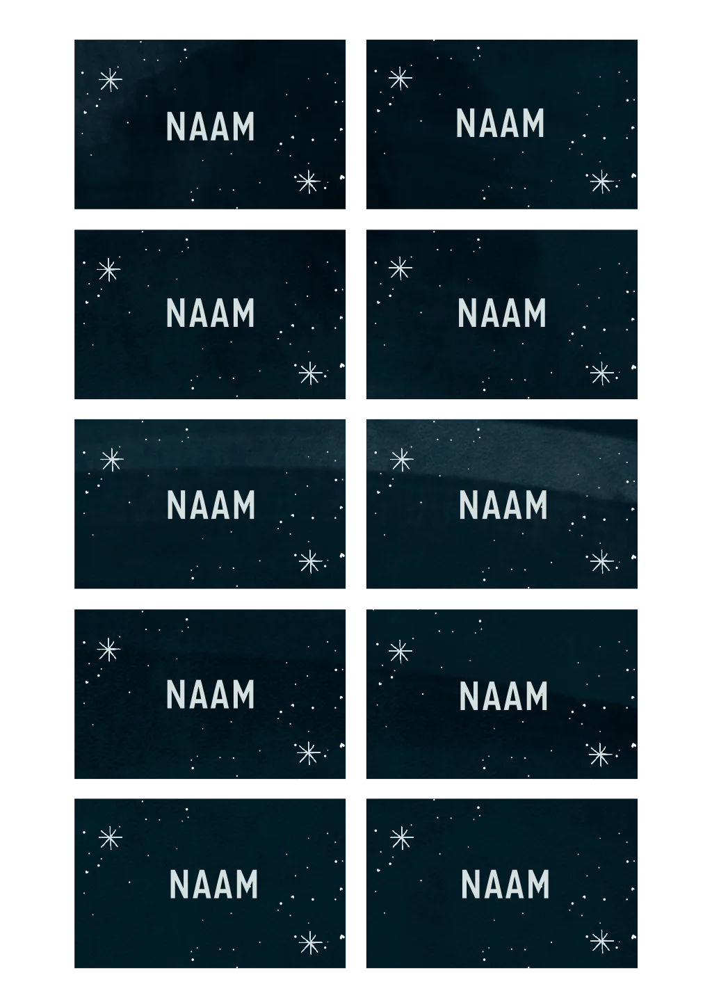 Stijlvolle naamkaartjes passend bij je 21 diner uitnodiging, mooi met de donkere achtergrond en de kleine sterretjes. Pas de kleuren en lettertypes naar wens aan in de editor en bestel deze naamkaartjes gemakkelijk.