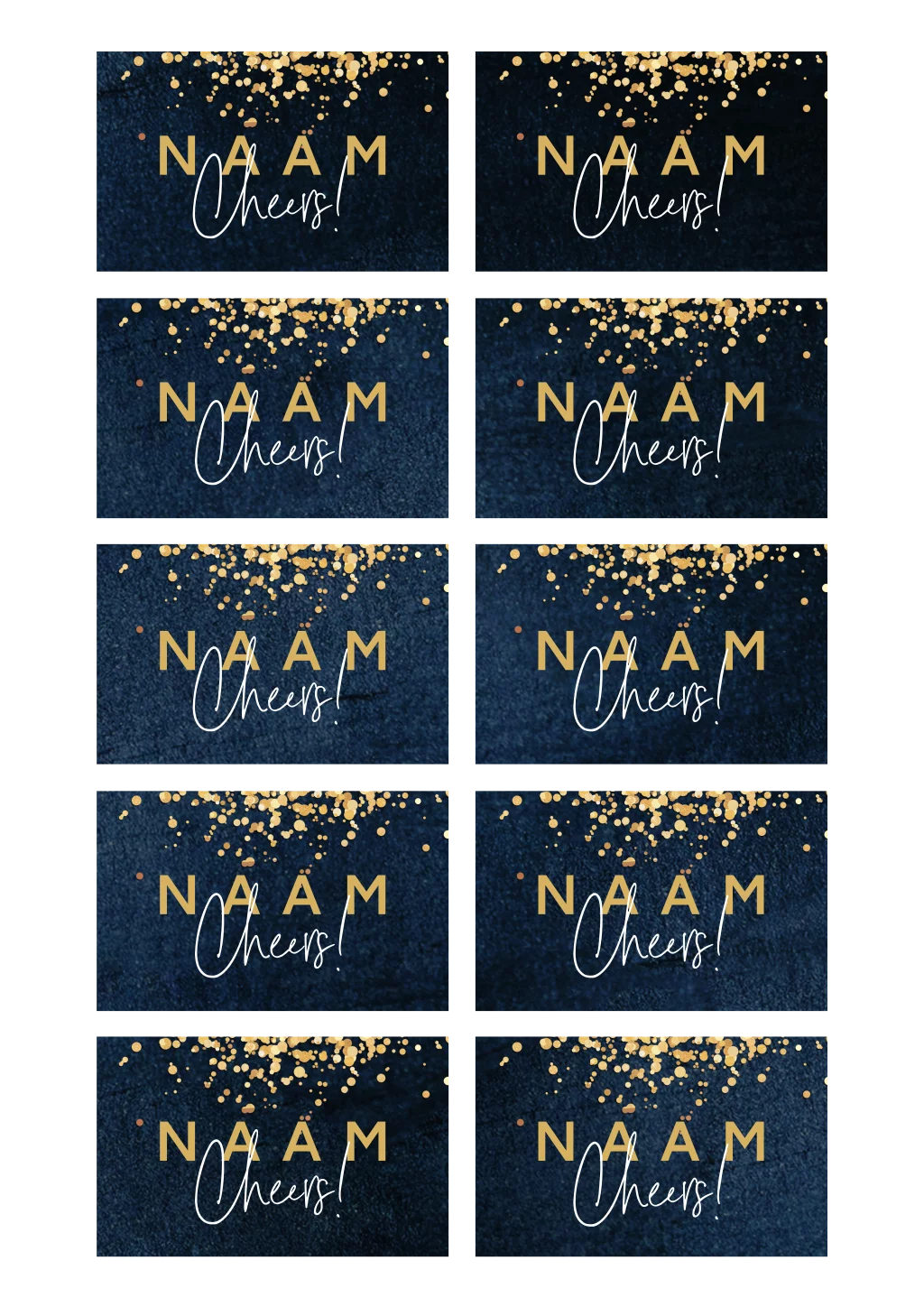 Naamkaartjes blauw met gouden glitters