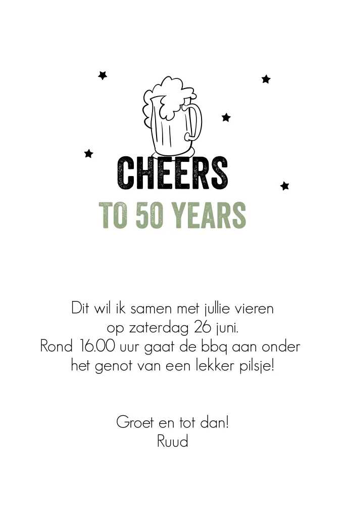 Uitnodiging bbq tuinfeest man 50 jaar