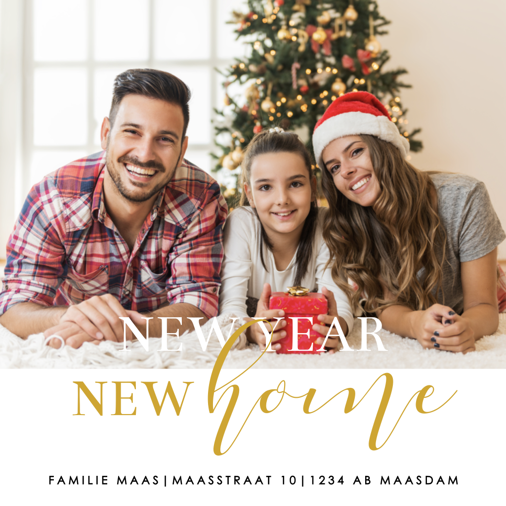 Leuke persoonlijke fotokaart om iedereen tijdens de feestdagen te laten weten dat jullie gaan verhuizen. Vervang de foto op de voorzijde eenvoudig voor je eigen foto.
