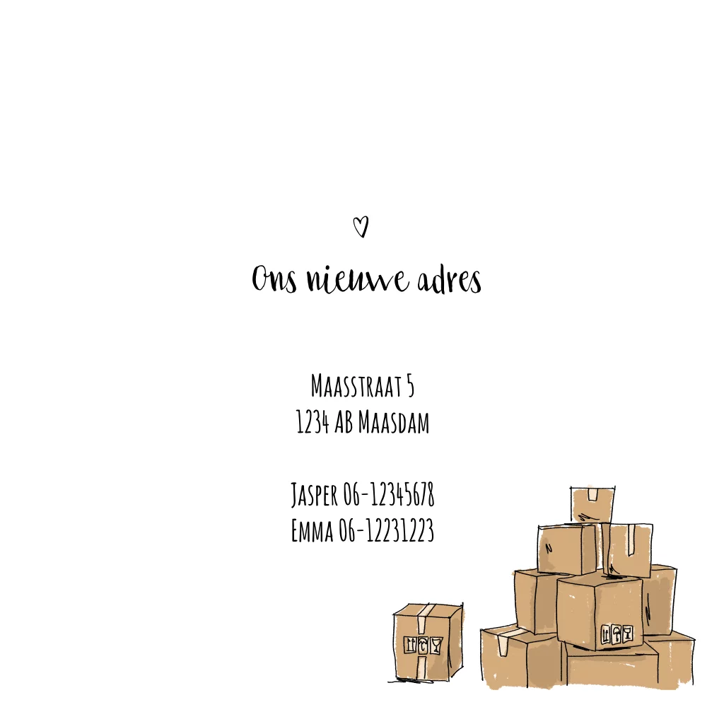 Een vrolijk geïllustreerd verhuiskaartje met een huis in een verhuisdoos. Laat familie en vrienden met dit vrolijke kaartje weten dat jullie gaan verhuizen.Op de binnenzijde is er ruimte voor een eigen foto.