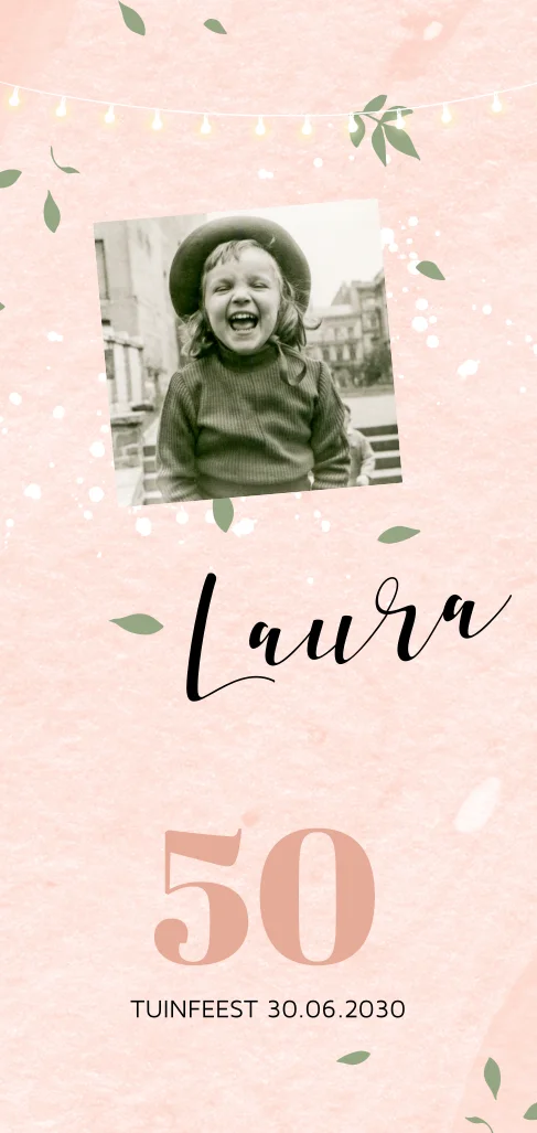 Verjaardagsuitnodiging tuinfeest sarah roze met spetters