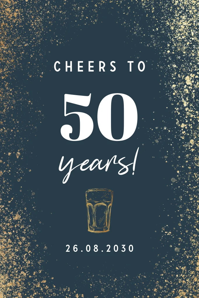 Feestelijke verjaardagsuitnodiging 50 jaar met gouden confetti.
