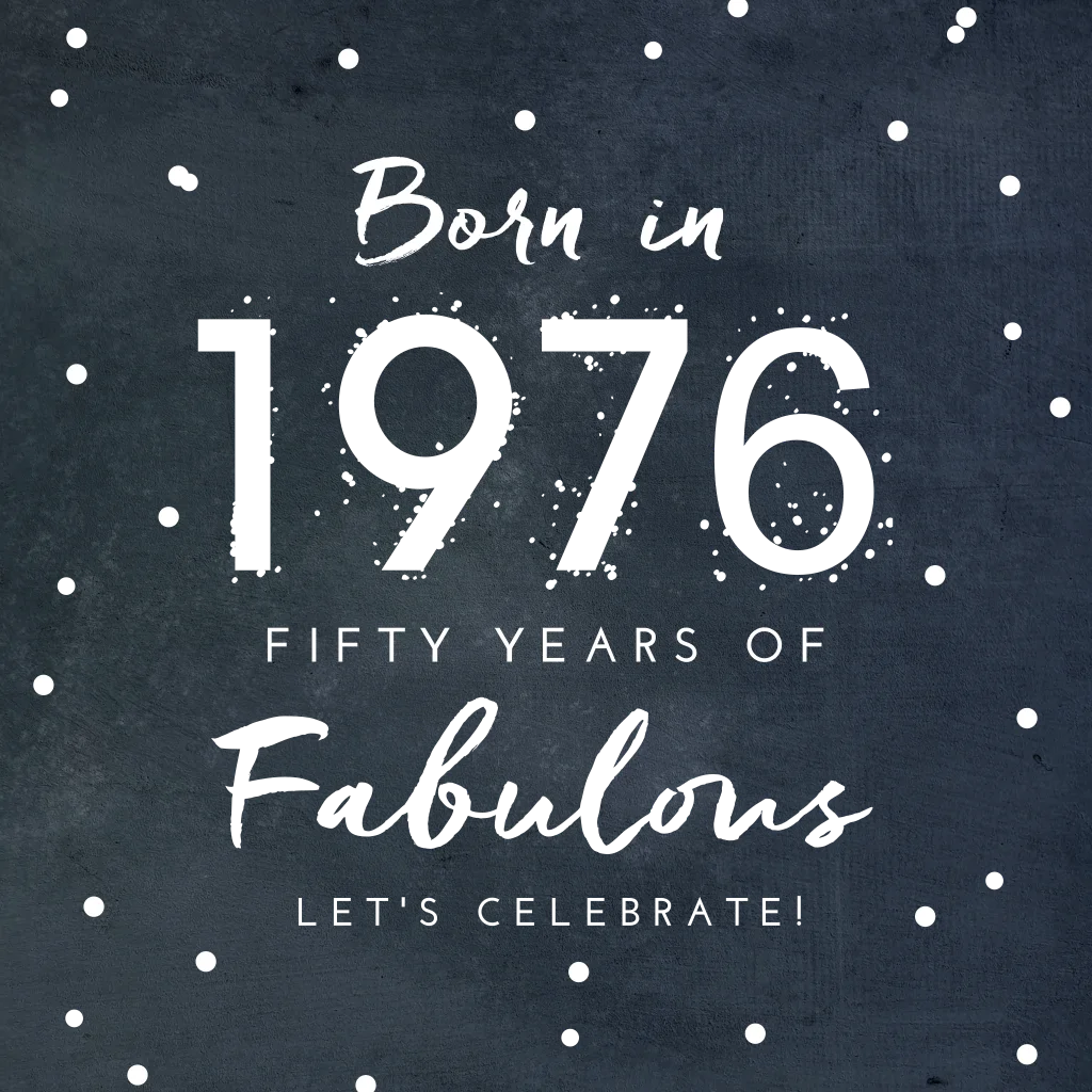 Verjaardagsuitnodiging sarah met grappige tekst en vrolijke confetti in wit en goud. Het geboortejaar springt er door de goudfolie mooi uit.