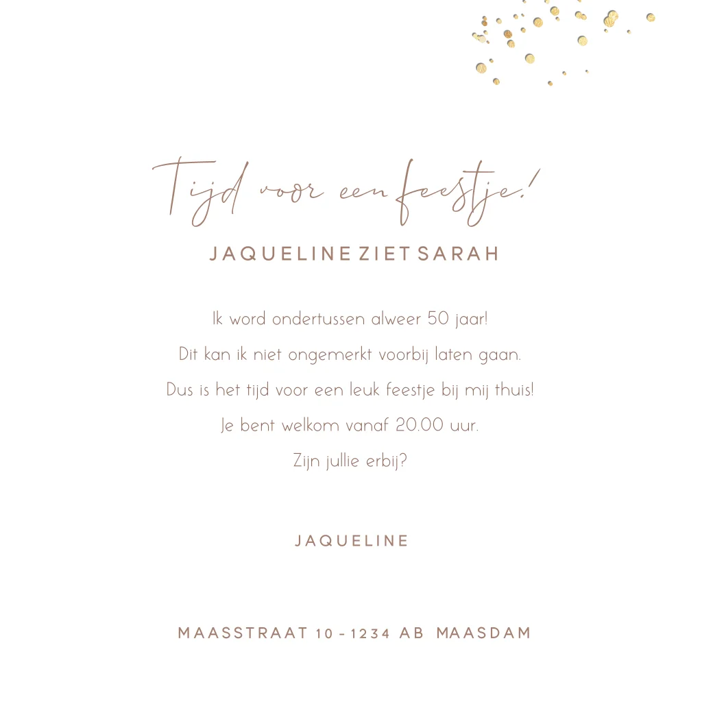 Stijlvolle uitnodiging 50 jaar in neutrale kleur met foto en mat goudfolie