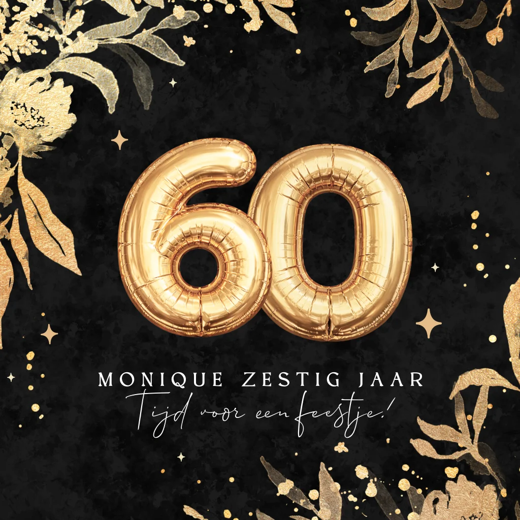 Stijlvolle uitnodiging 60 jaar met goudlook ballonnen