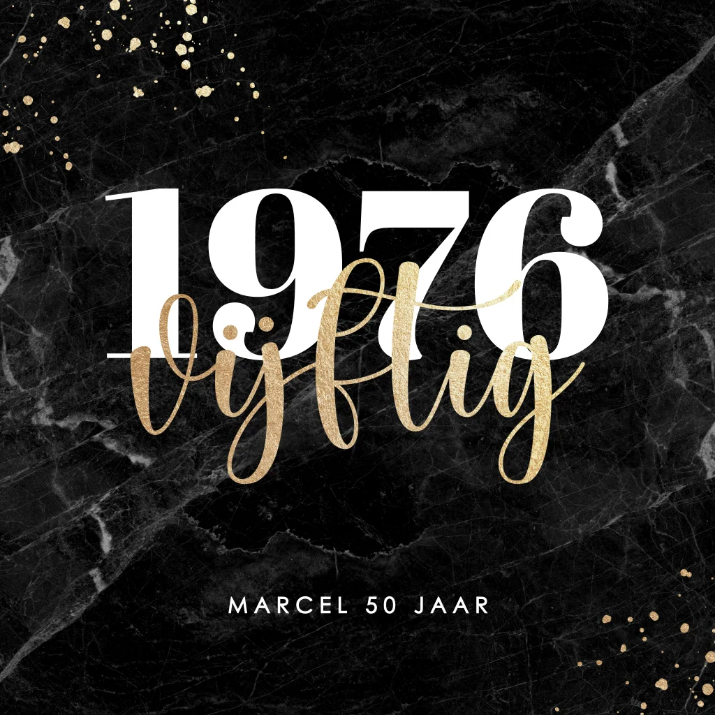Je vijftigste verjaardag mag gevierd worden! Kies voor deze verjaardagsuitnodiging in zwart-wit marmer met goud look tekst.