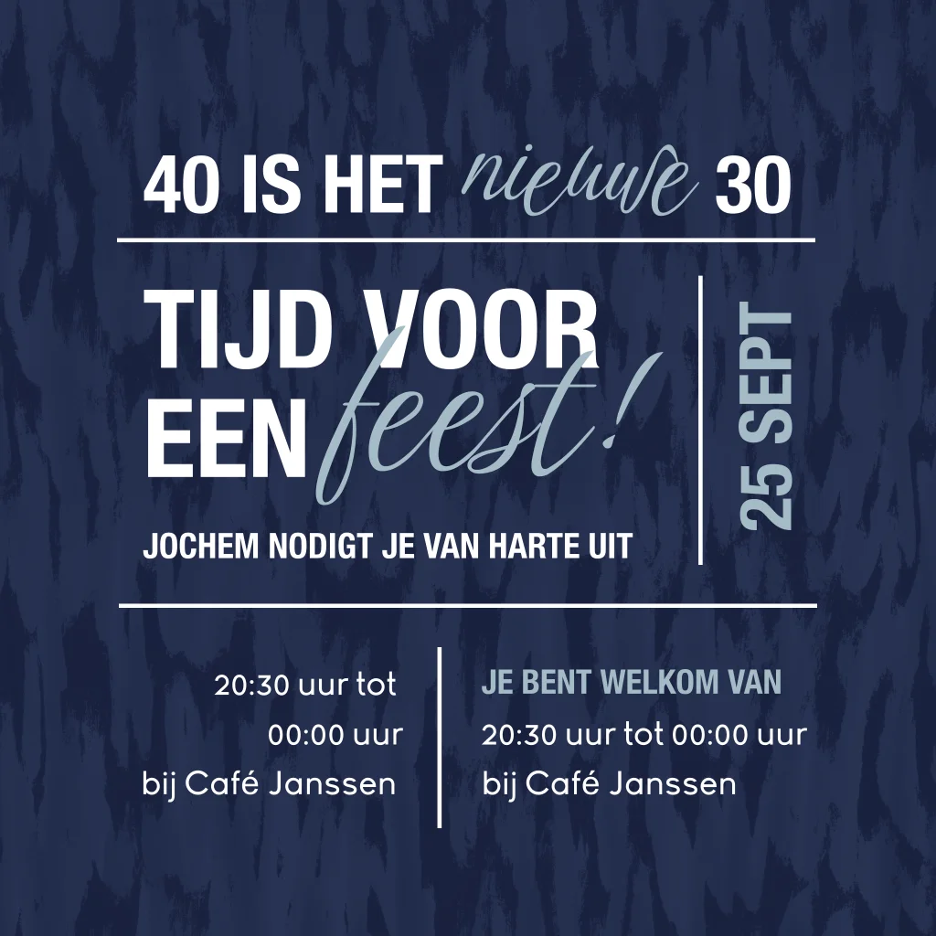 Stoere uitnodiging verjaardag 40 met blauwe structuurachtergrond