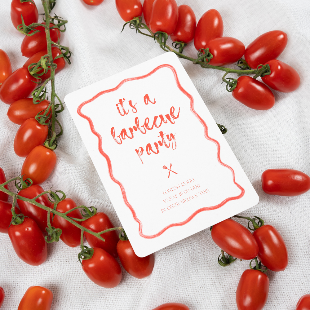 Tuinfeestje of housewarming op de planning? Nodig jullie familie en vrienden uit met deze hippe BBQ-uitnodigingskaart!