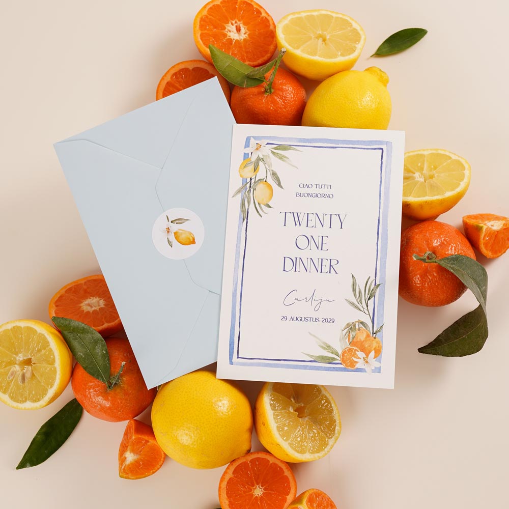Uitnodiging 21 diner Italiaans met citroenen en sinaasappels