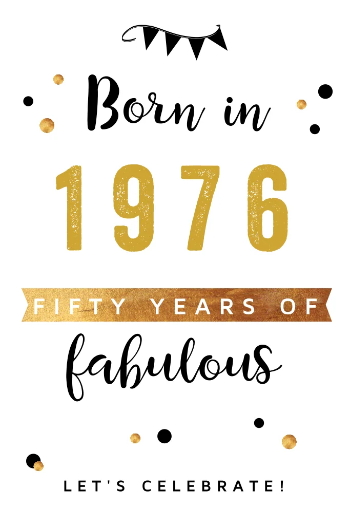 Vrolijke uitnodiging voor een vijftigste verjaardag van een vrouw. Mooi design met stippen en slinger. Het jaartal is gemakkelijk zelf aan te passen. Dus deze uitnodiging is voor elke mijlpaal leuk!