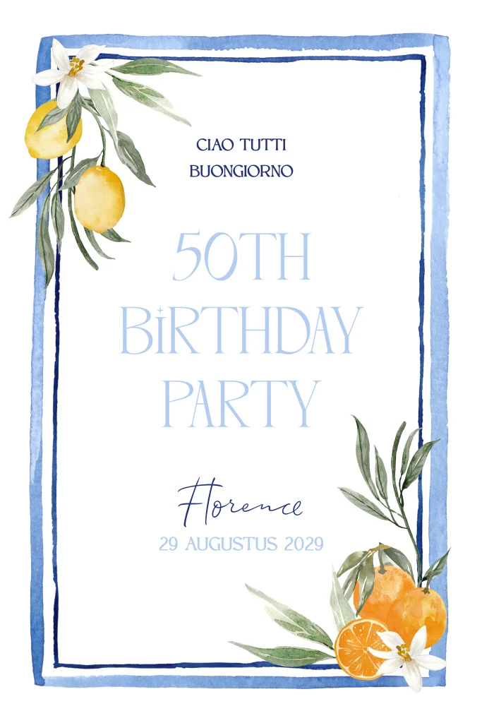 Uitnodiging 50e verjaardag Italiaans met citroenen en sinaasappels