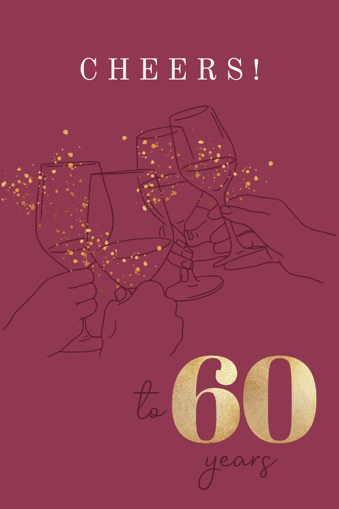 Uitnodiging 60 jaar in rood met wijnillustratie en goudfolie