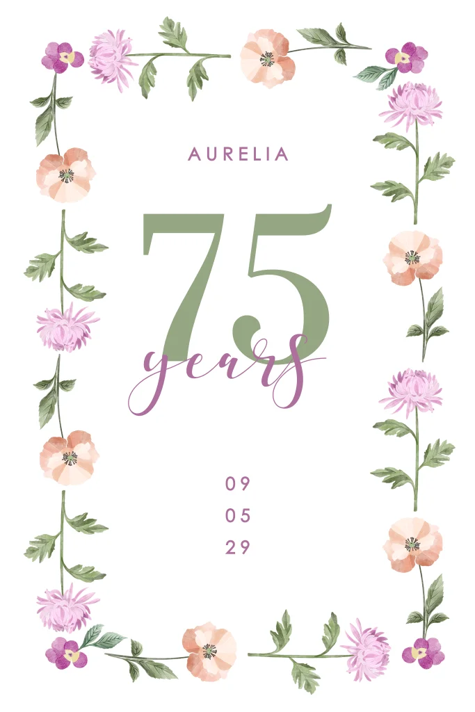Uitnodiging 75e verjaardag met bloemenkrans
