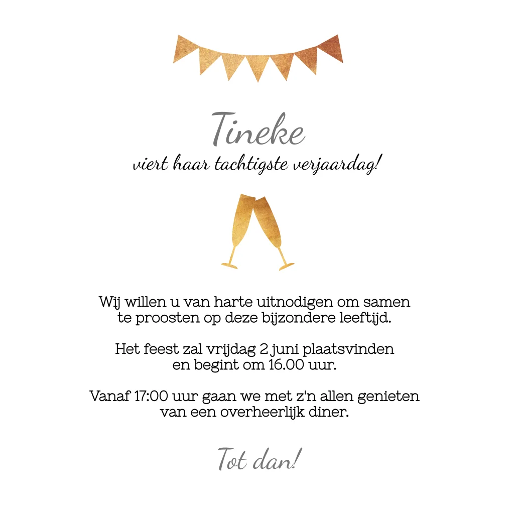 Verjaardagsuitnodiging vrouw tachtig jaar met confetti