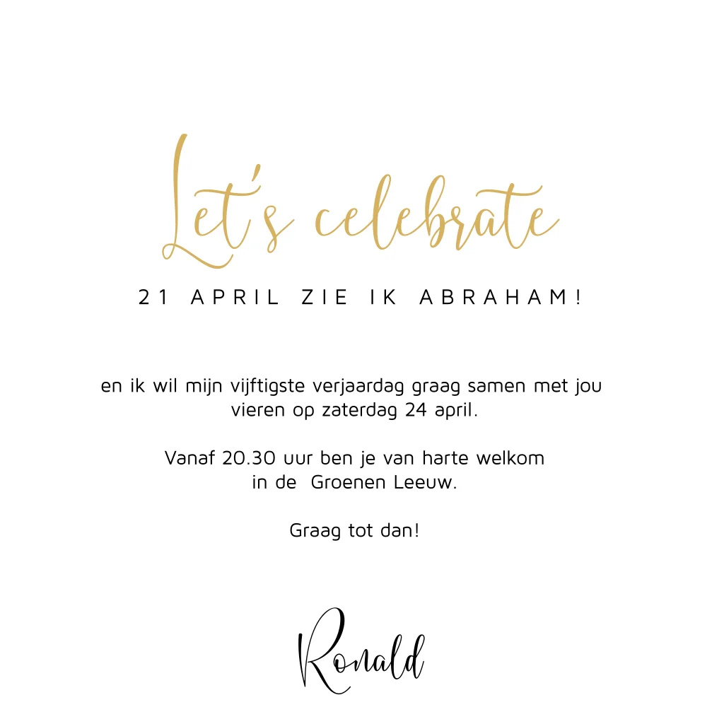 Abraham kaart 50 jaar goud zwart