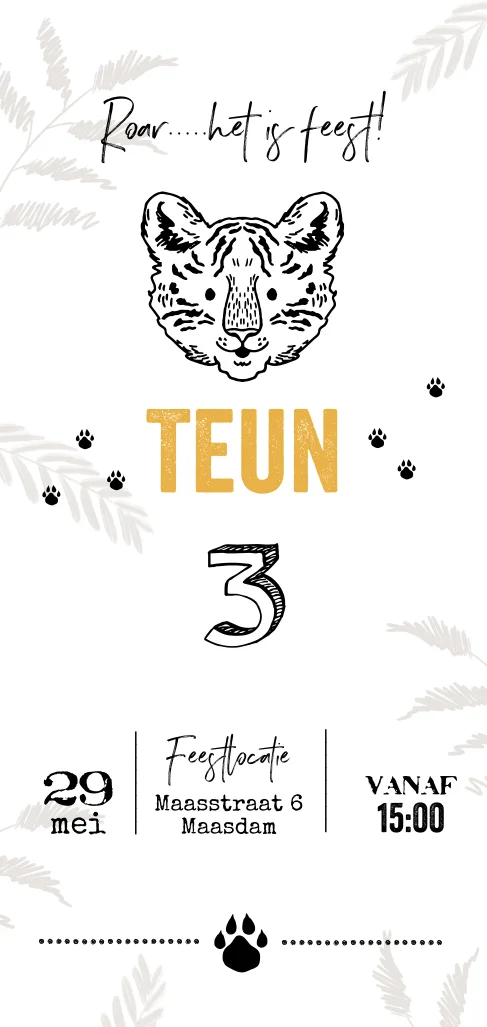 Stoere uitnodiging verjaardag 3 jaar met tijger