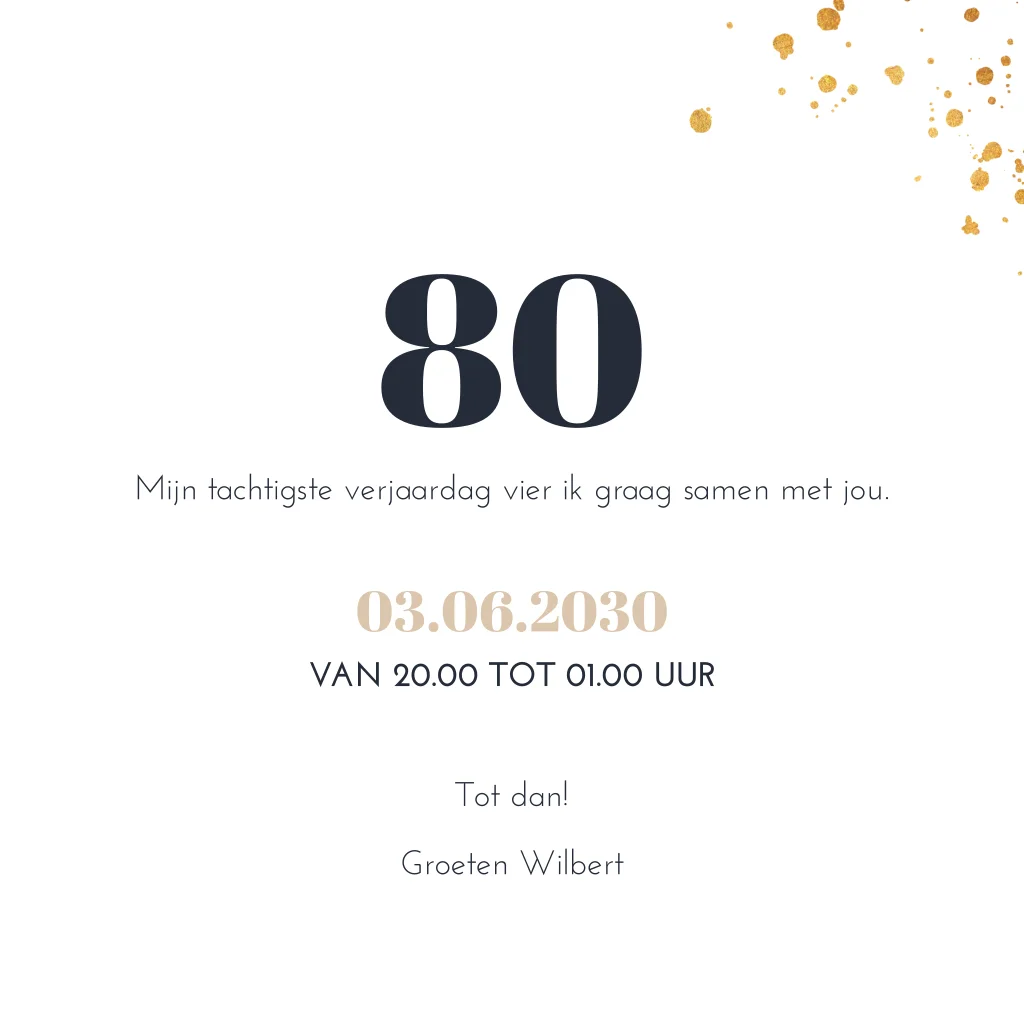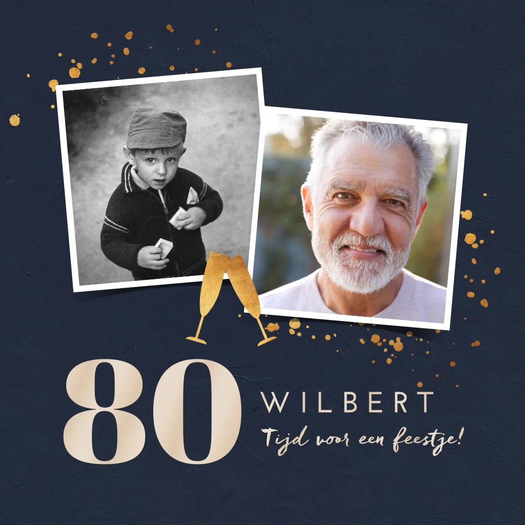 Uitnodiging verjaardag man 80 jaar met foto's en confetti