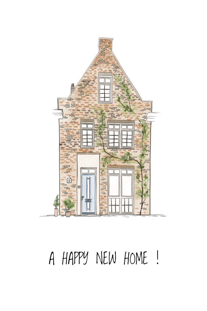 Maak een persoonlijke verhuiskaart met een illustratie op maat van jullie nieuwe woning. Deze kan aangevraagd worden via deze pagina.