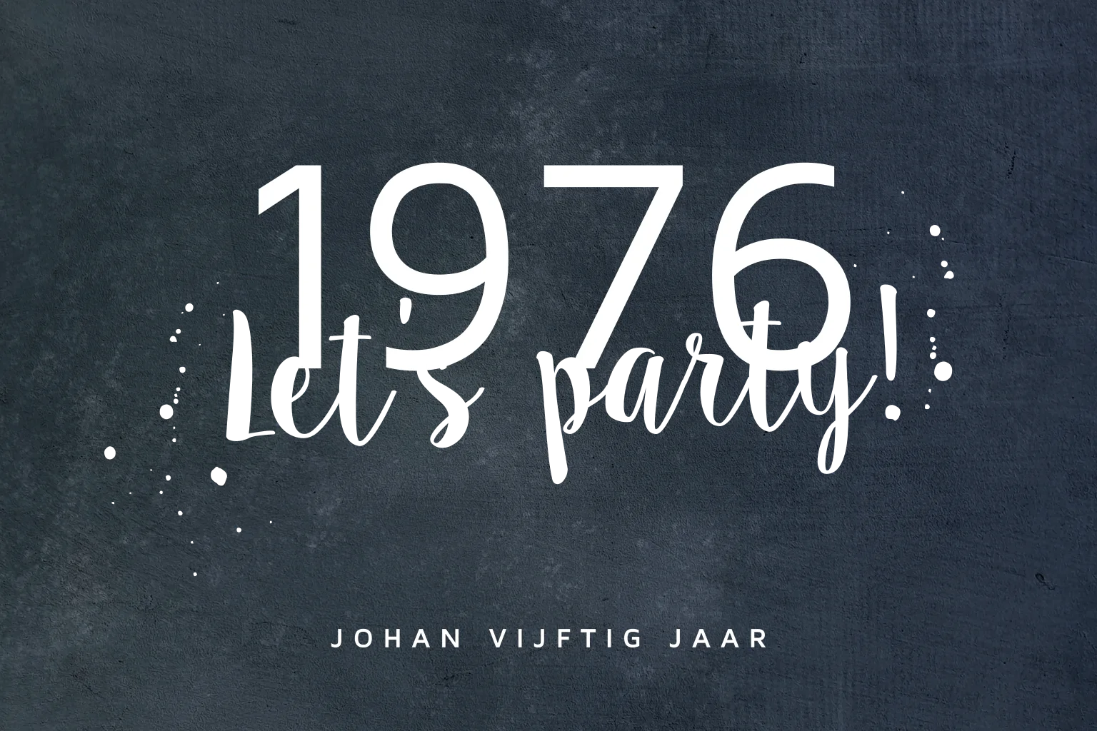 Originele verjaardagsuitnodiging 50 jaar met donkerblauwe achtergrond waarbij het geboortejaar centraal staat. De tekst in goudfolie geeft het ontwerp een feestelijke uitstraling.