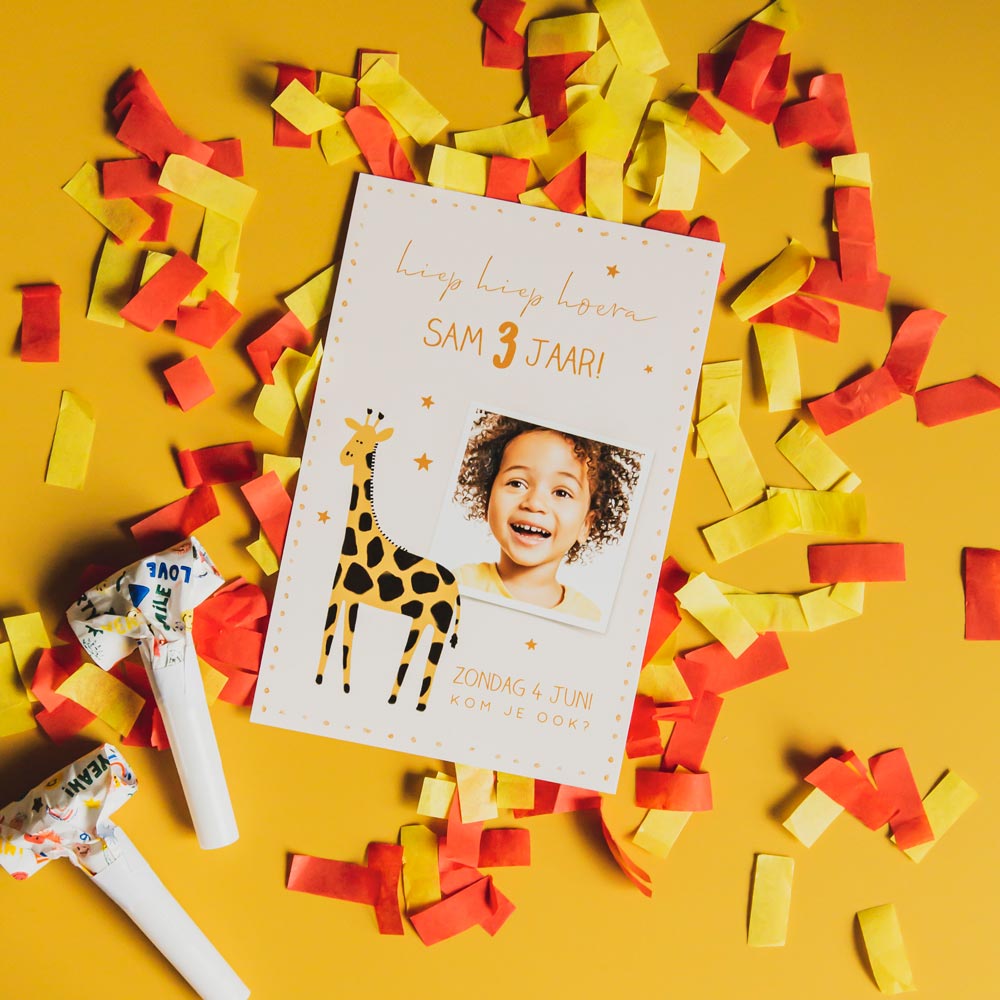 Goed om te weten: dit design bevat een kader. Omdat de kaarten na het drukken op een groot vel pas worden uitgesneden op het juiste formaat, kan het zijn dat het kader íetsje smaller of breder uitvalt. Dit gaat slechts om een paar millimeter, maar we willen het wel graag vermelden.