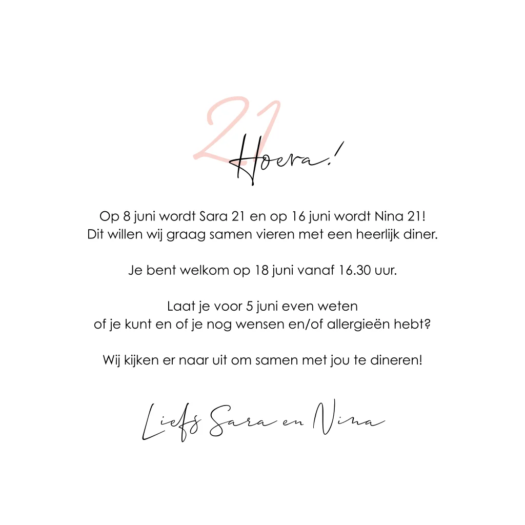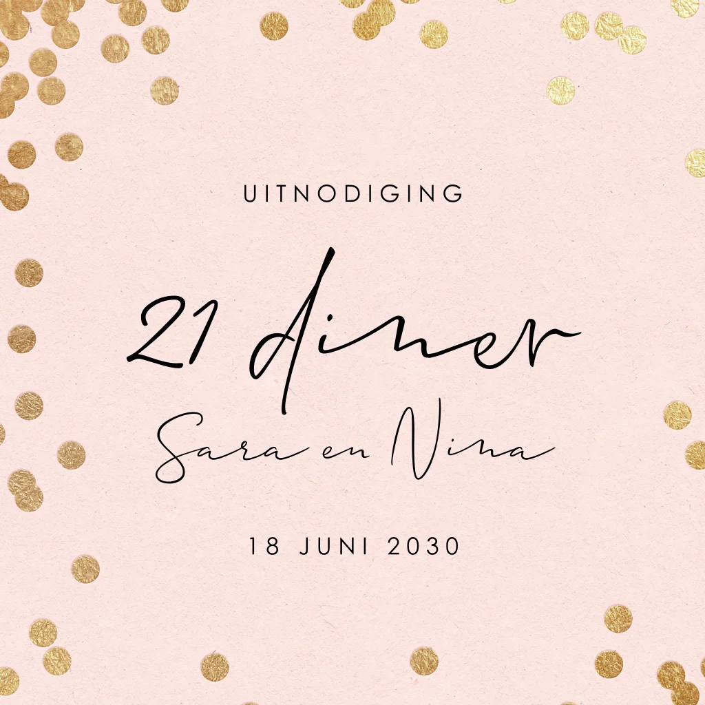 Uitnodigingskaart twenty one dinner met confett. Deze uitnodiging is al een feestje op zich!