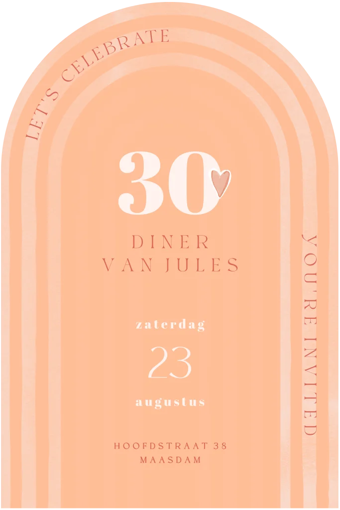 Je wordt 30 jaar, gefeliciteerd! Tijd voor een feestje. Kies voor deze stijlvolle uitnodiging in boogvorm.