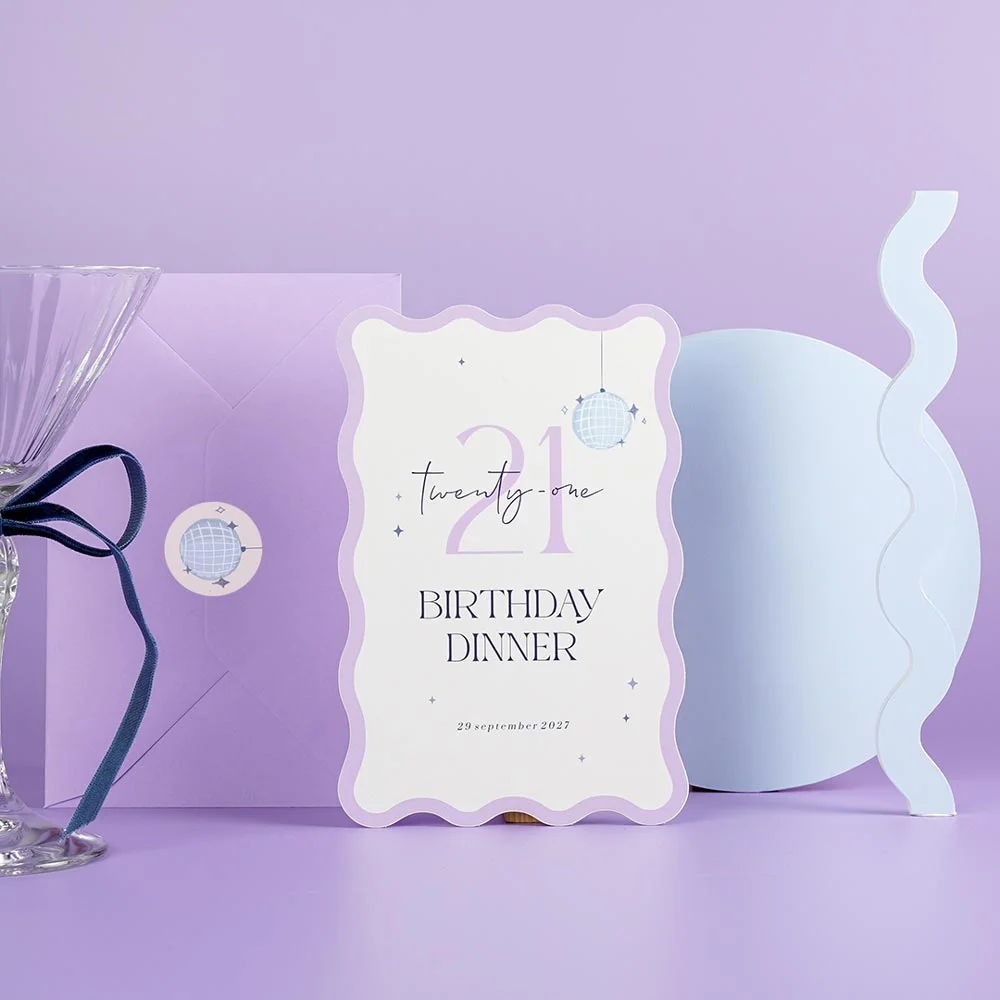 Goed om te weten: dit design bevat een kader. Omdat de kaarten na het drukken op een groot vel pas worden uitgesneden op het juiste formaat, kan het zijn dat het kader íetsje smaller of breder uitvalt. Dit gaat slechts om een paar millimeter, maar we willen het wel graag vermelden.