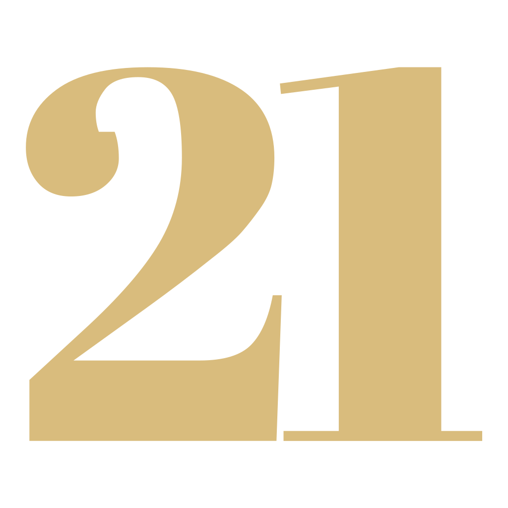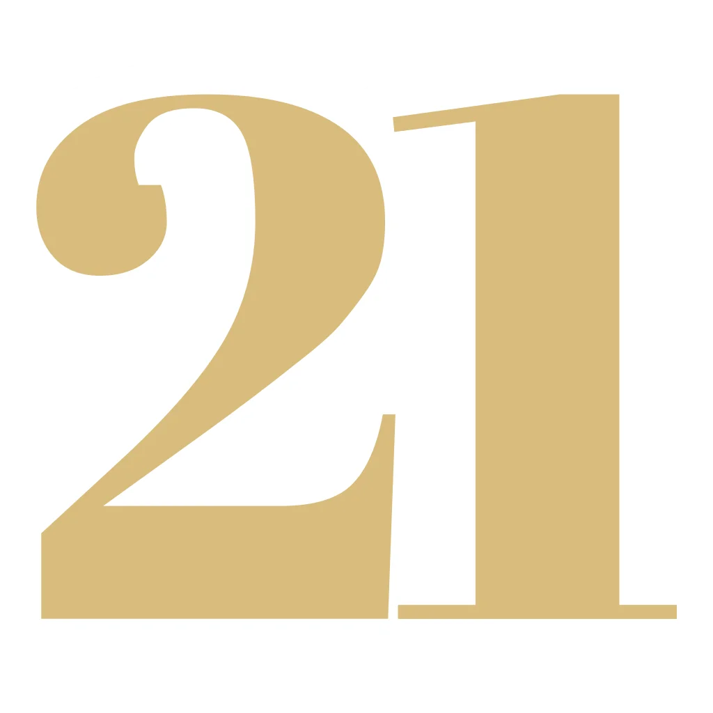 Originele uitnodiging 21 jaar in de vorm van het cijfer 21.