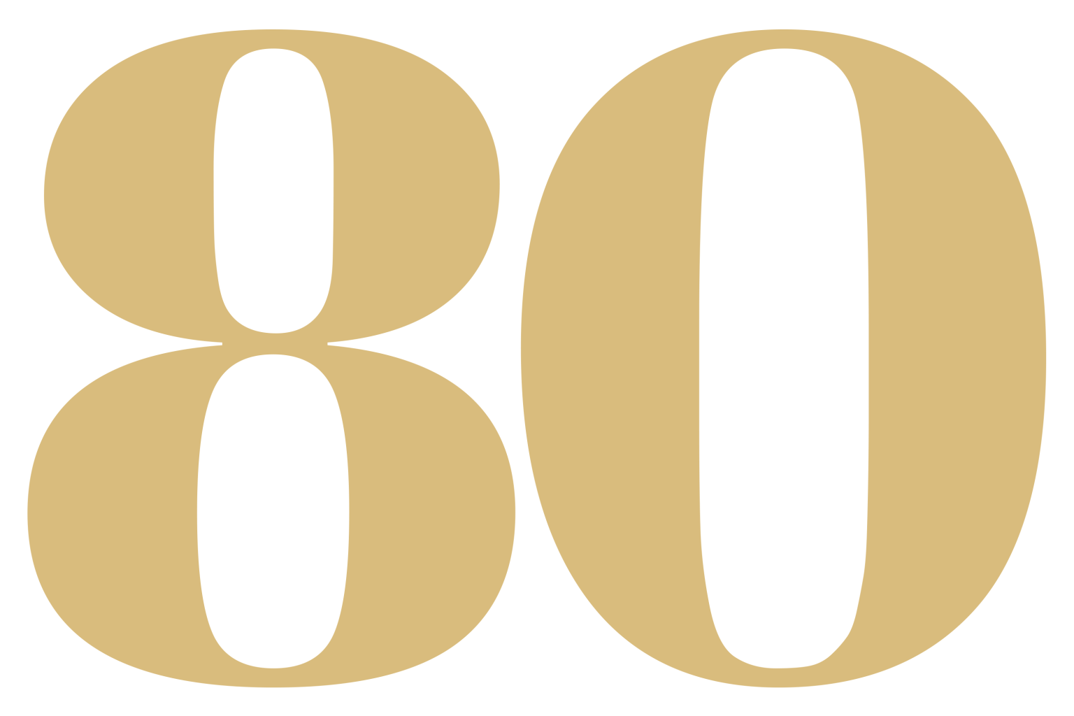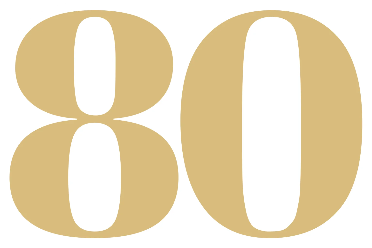 Originele uitnodiging voor een tachtigste verjaardag in de vorm van het cijfer 80.