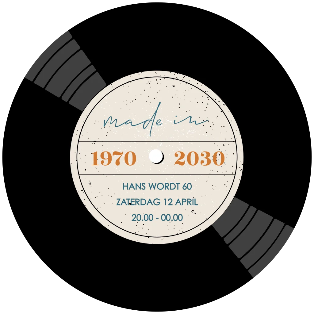 De voorpret voor je 60e verjaardag begint al met deze originele uitnodiging in de vorm van een lp! De tekst in het midden pas je eenvoudig zelf aan in de online editor.