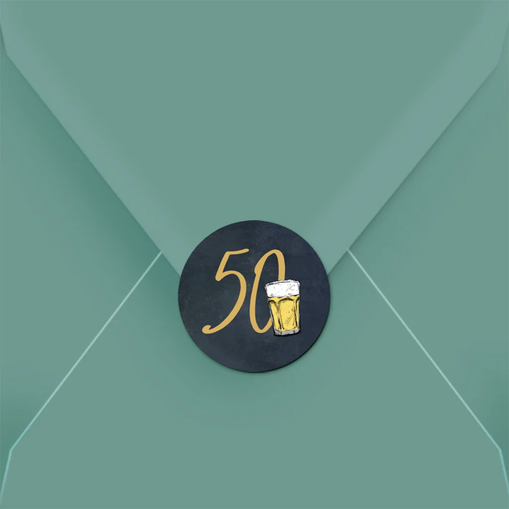 Sluitzegel uitnodiging 50 jaar met bierglas | 25 stuks
