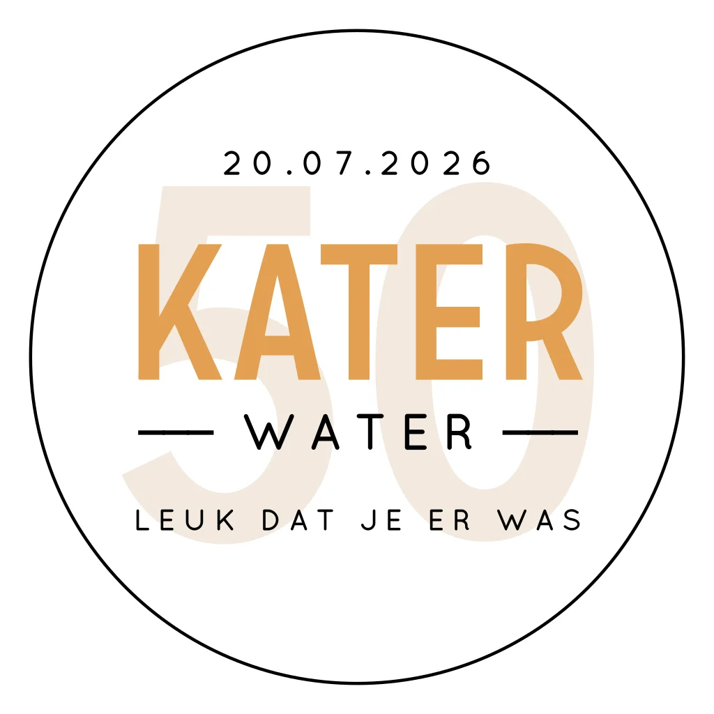 Sticker voor katerwater verjaardag 50 jaar in oranje tinten
