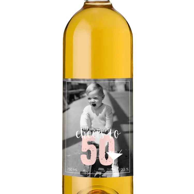 Wijnetiket verjaardag 50 jaar met foto en cocktail - per 5 stuks
