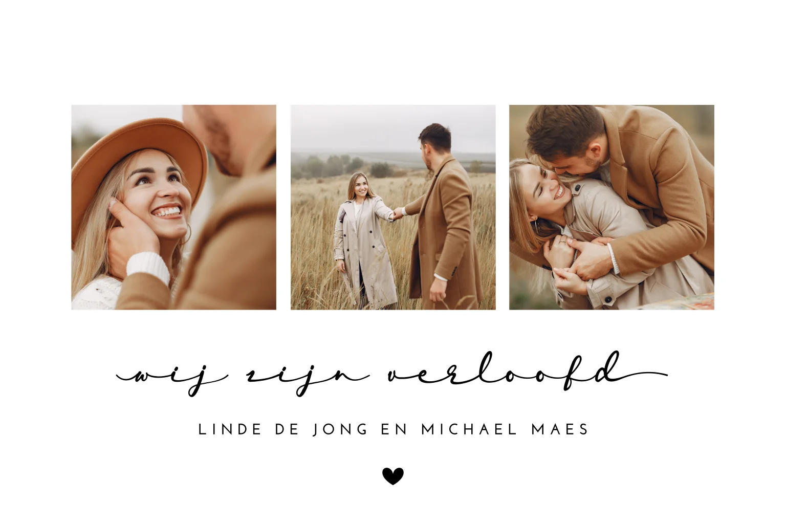 Stijlvolle uitnodiging om jullie verloving mee aan te kondigen.