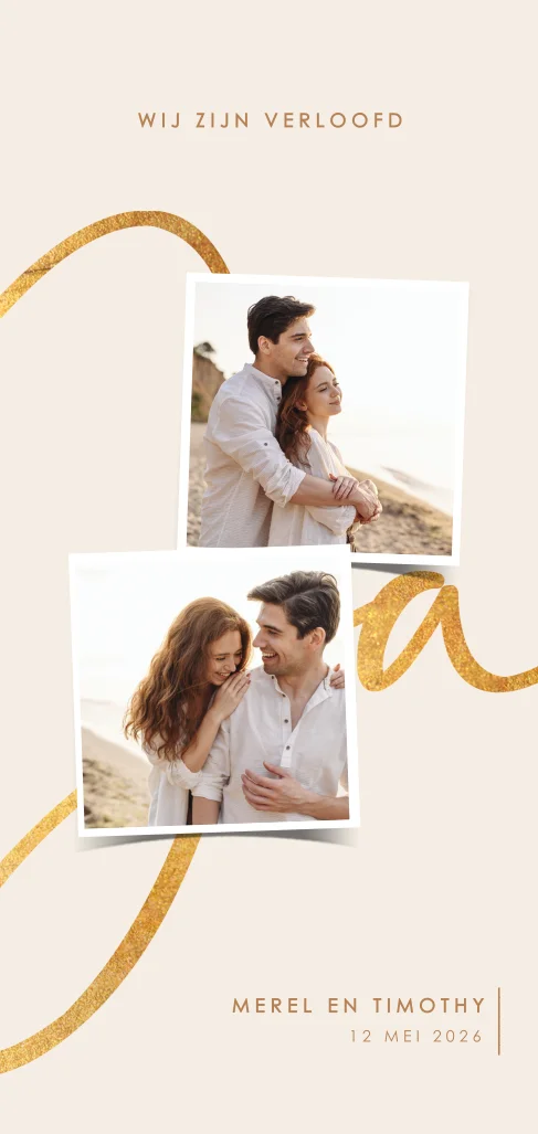 Gefeliciteerd, jullie zijn verloofd! Laat het je vrienden/familie weten met deze leuke verlovingskaart met ruimte voor jullie lievelingsfoto's.