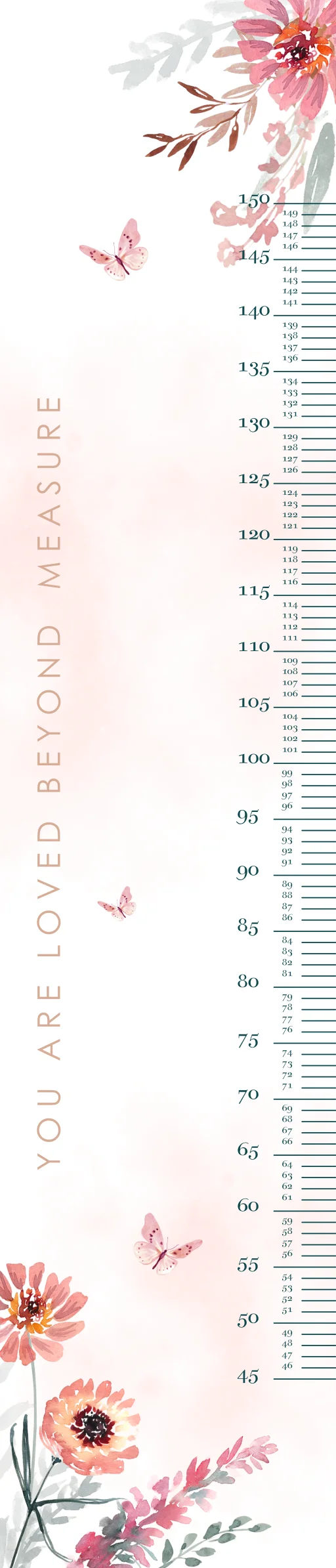 Op zoek naar een groeimeter? Kies voor dit stijlvolle ontwerp met bloemen en vlinders en personaliseer naar wens. De mooiste groeimeters: