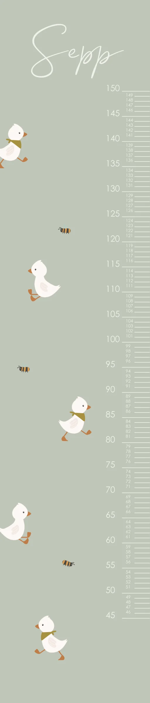 Iedere kinderkamer wordt leuker met deze groeimeter! Deze groeimeter heeft een groene achtergrond met daarop vrolijke illustraties van eendjes. Pas de groeimeter naar wens aan in de online editor.