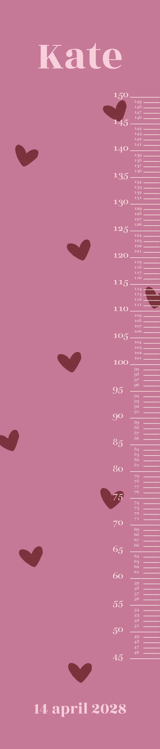 Op zoek naar een hippe groeimeter? Kies voor dit lieve ontwerp met hartjes en personaliseer naar wens. De mooiste groeimeters: