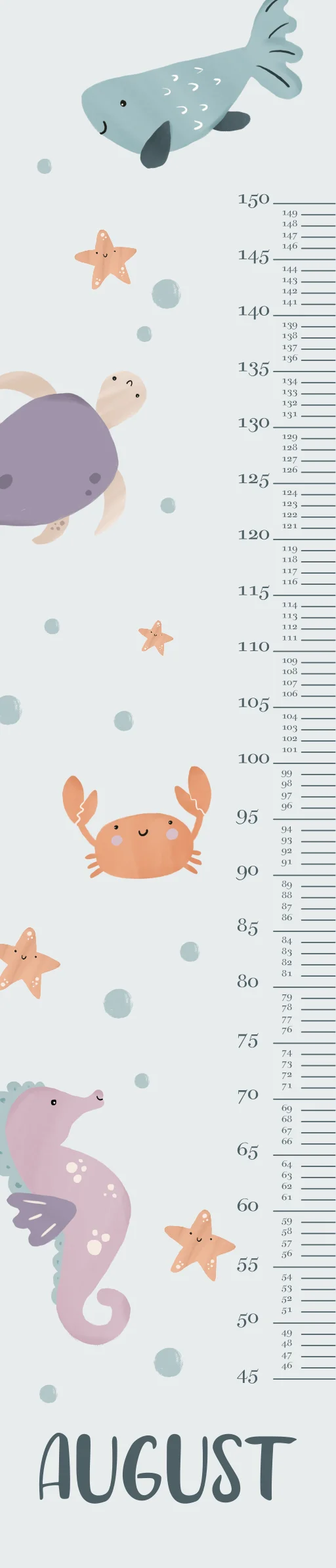 Ben je op zoek naar een leuk item voor op de kinderkamer? Deze groeimeter met zeedieren kun je helemaal zelf personaliseren.