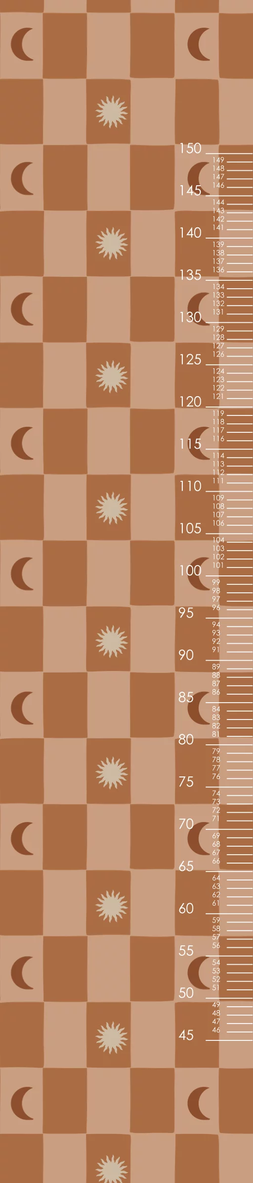 Groeimeter voor kinderkamer met zon en maan in bruintinten